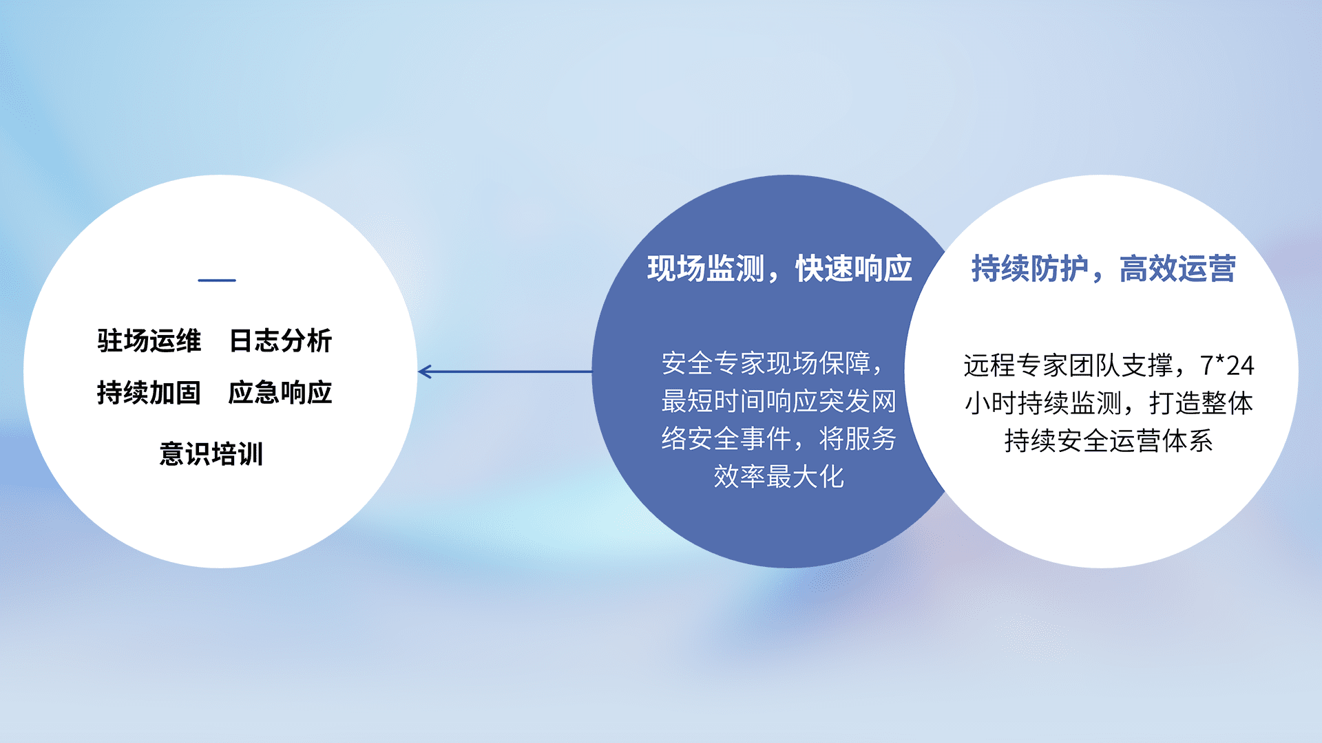 针对客户行业特性,,,提供专属的一站式安全管理服务,,帮助客户全面感知网络空间威胁,,,,通过安全专家的线上、、、、线下防护支持,,,实现风险闭环,,将安全保障常态化,,为客户打造常态化安全运维运营服务。。。